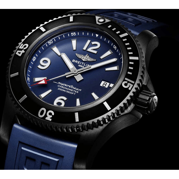 The Breitling Superocean is a luxury watch collection created by Breitling, the Swiss luxury watch manufacturer founded in 1884. The Superocean collection is known for its sporty design and its water-resistance capabilities, specifically designed for professional and recreational divers. These models feature different complications, and are available in a range of materials including steel, titanium, and ceramics. The Superocean watches are powered by in-house mechanical movements and are water-resistant up to 200m to 2000m, suitable for diving and water sports. The collection has a rich history, it was first introduced in the early 1950s, and since then, it has been known for its precision, durability and sporty design, making it a perfect watch for those who appreciate sporty elegance and precision, and also for those who enjoy water activities.
